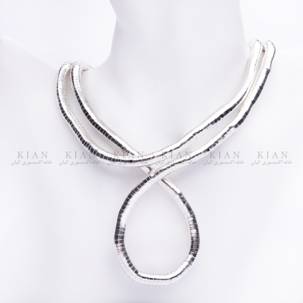 گردنبند منعطف نقره ای از مجموعه ی خاص خانه اکسسوری کیان، با طراحی ساده و در عین حال شیک، انتخابی کاربردی برای انواع استایل های روزمره و رسمی است.