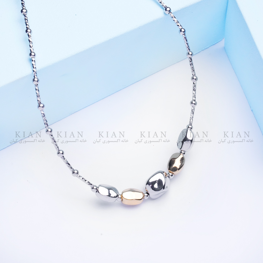 گردنبند مهره سنگی نقره ای از مجموعه زیورآلات خاص خانه اکسسوری کیان، انتخابی شیک و ساده برای استایل های روزمره و رسمی است. این گردنبند با زنجیر نقره ای براق و مهره های سنگی صیقلی در رنگ های ملایم طراحی شده که جلوه ای طبیعی و خاص به گردن شما می دهد.