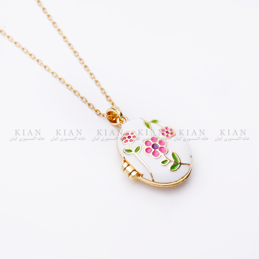 پلاک این گردنبند به شکل یک بیضی کوچک طراحی شده و سطح آن با گلهای ریز صورتی و طرحهای ظریف مینیمال تزئین شده است. این جزئیات رنگی در کنار قاب طلایی براق، جلوهای لطیف و زنانه ایجاد میکند و مدل را برای استایلهای روزمره، دانشگاه، مهمانیهای دوستانه و حتی هدیه دادن بسیار مناسب میسازد.