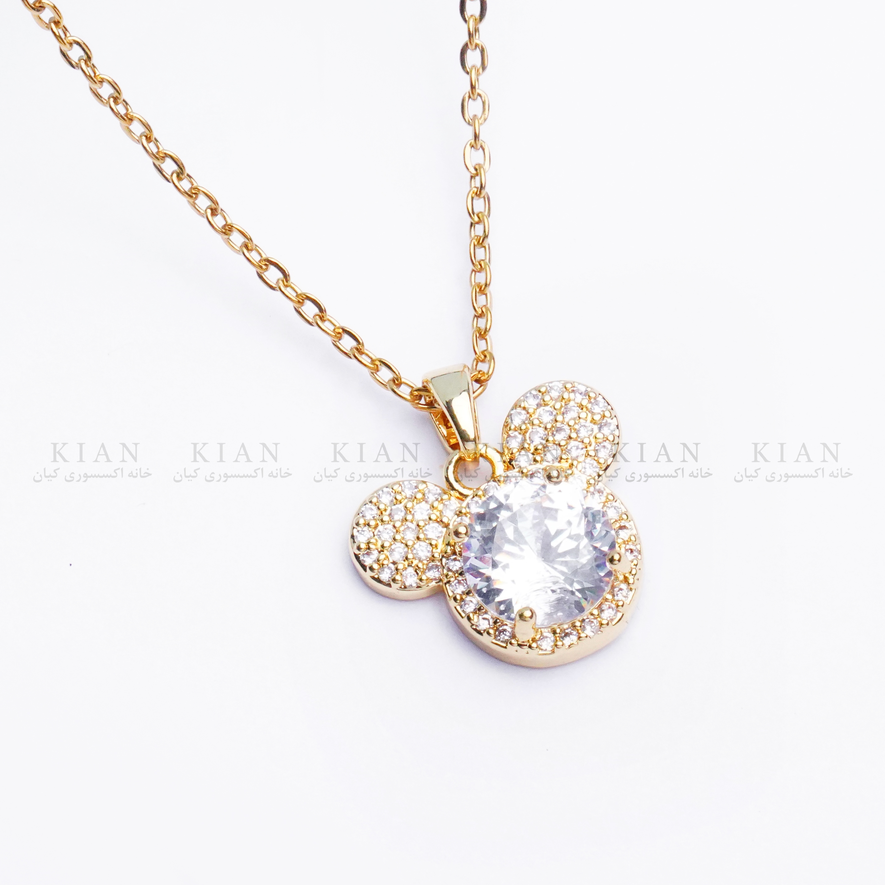 گردنبند میکی نگین دار طلایی از مجموعه زیورآلات خاص خانه اکسسوری کیان، ترکیبی از ظرافت، درخشش و حس نوستالژی است. طراحی فانتزی و الهام‌گرفته از شخصیت محبوب میکی، این گردنبند را به گزینه‌ای جذاب برای استایل‌های روزمره و دخترانه تبدیل کرده است. نگین‌های درخشان روی آویز، جلوه‌ای لطیف و چشم‌نواز به آن داده‌اند که در نور، زیبایی‌اش چند برابر می‌شود.