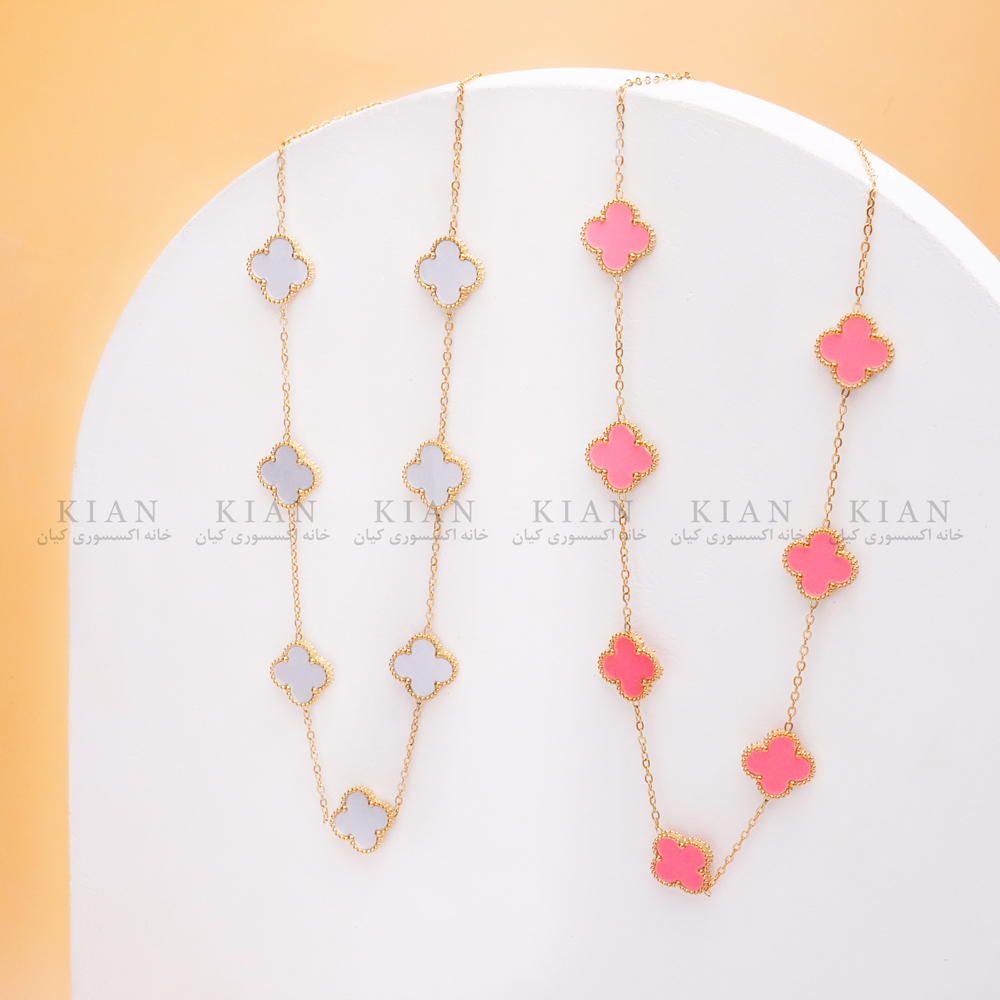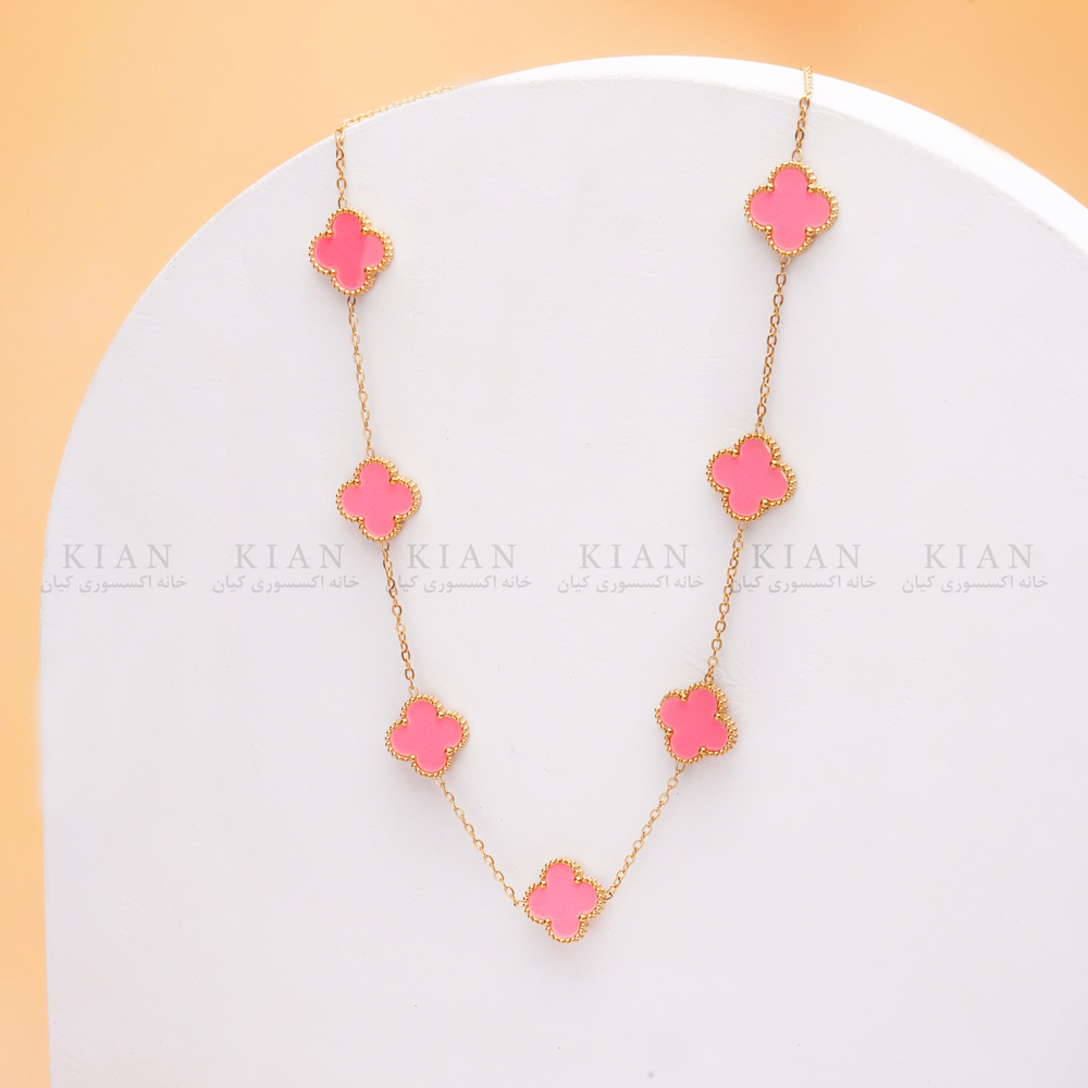 گردنبند ونکلیف ، گردنبند صورتی طلایی 7 گل