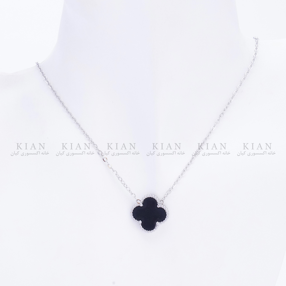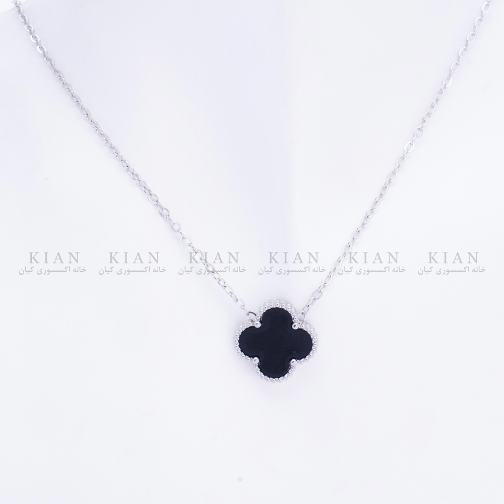گردنبند ونکلیف تک گل نقره ای مشکی