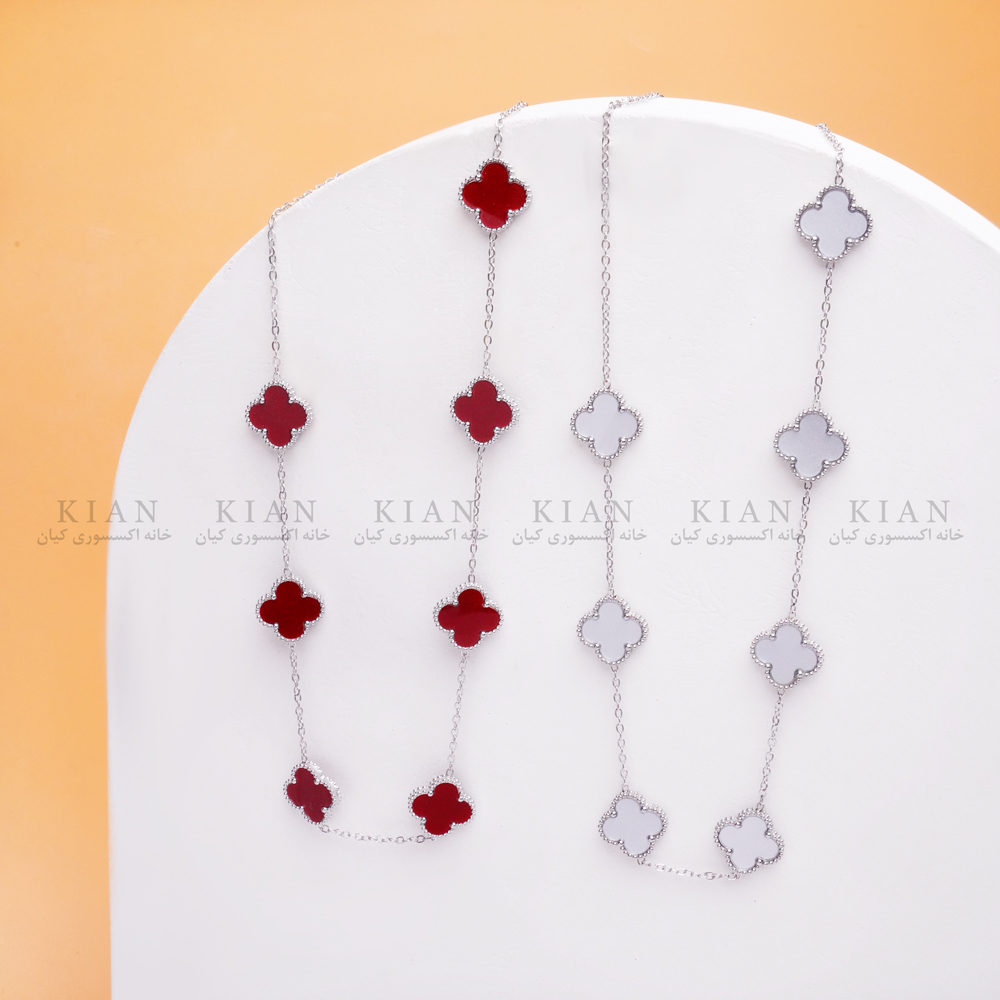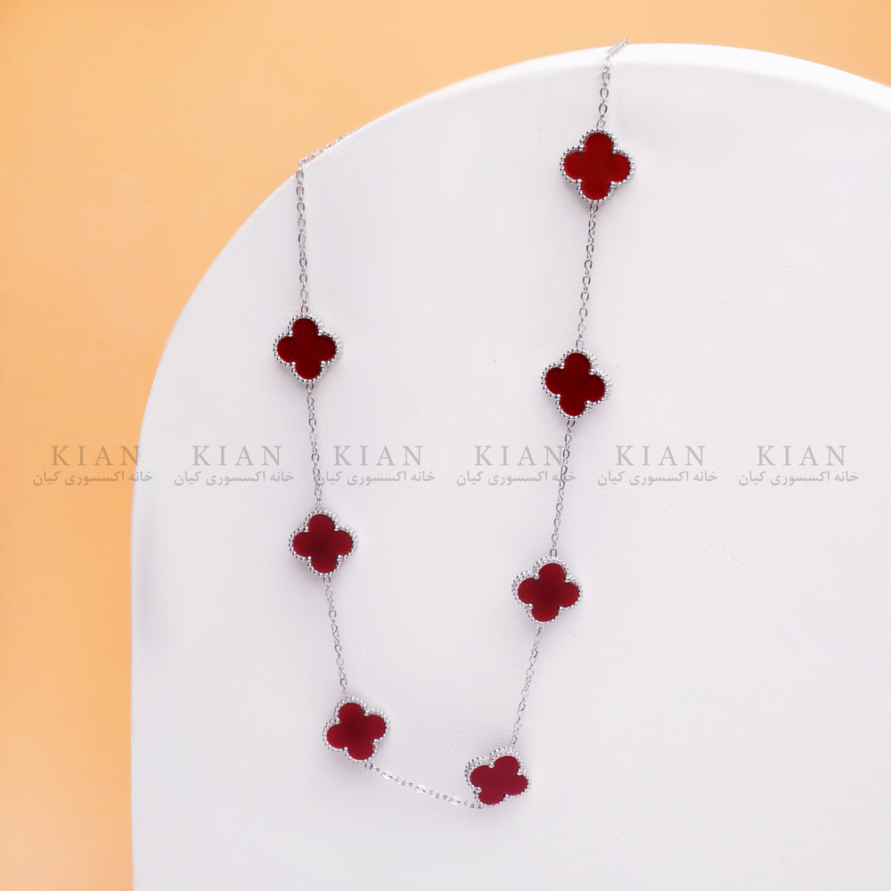 گردنبند ونکلیف نقره ای 5 ، گردنبند زرشکی نقره ای 7 گل