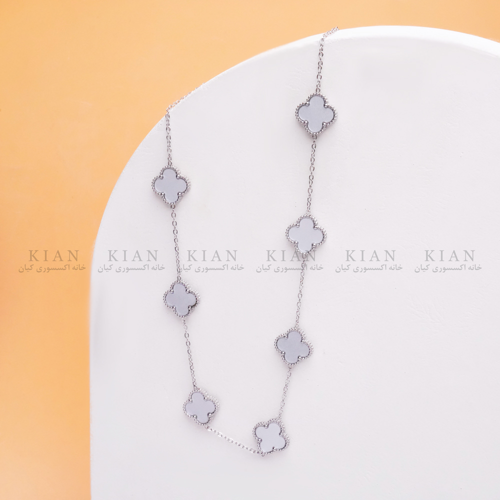 گردنبند ونکلیف نقره ای 5 ، گردنبند طوسی نقره ای 7 گل