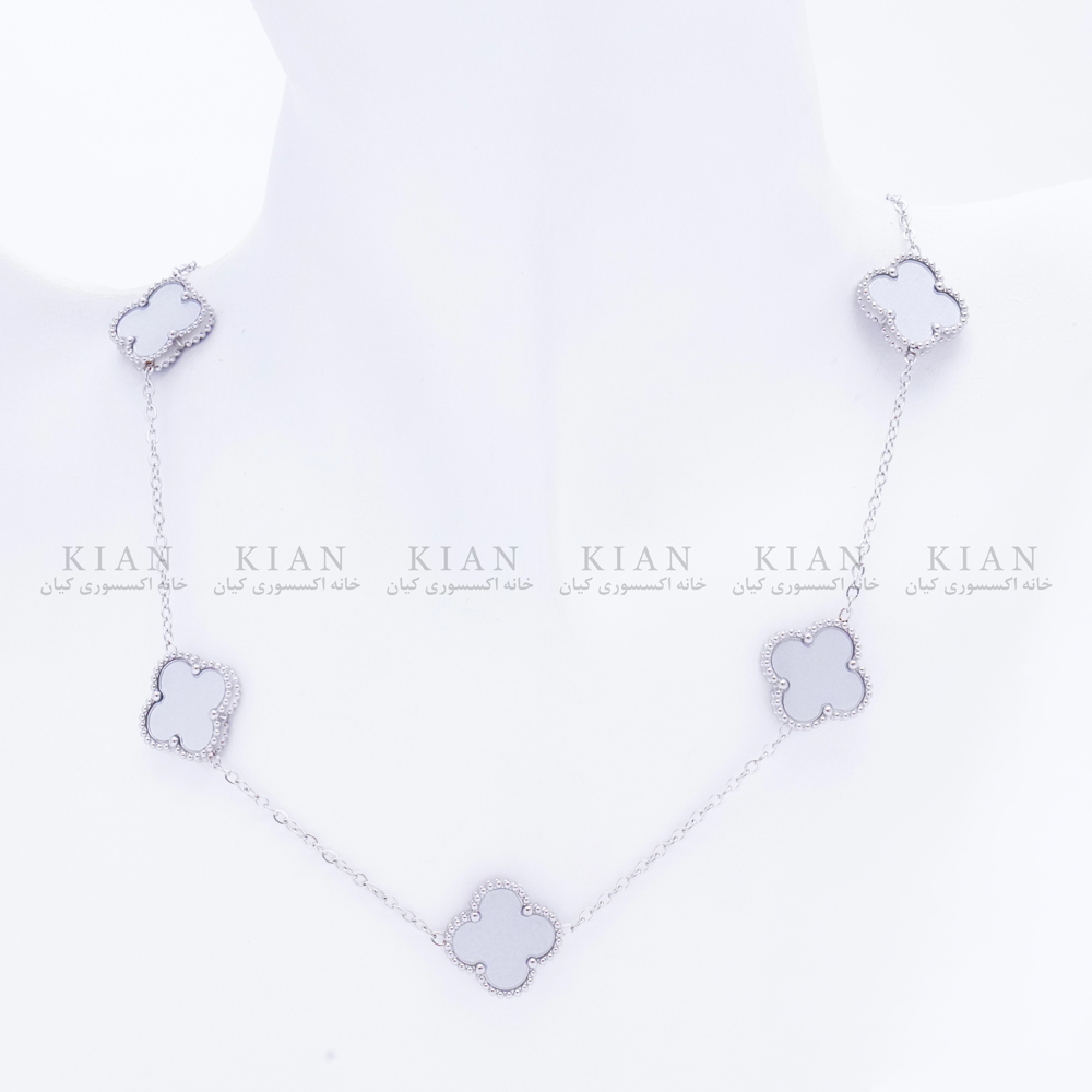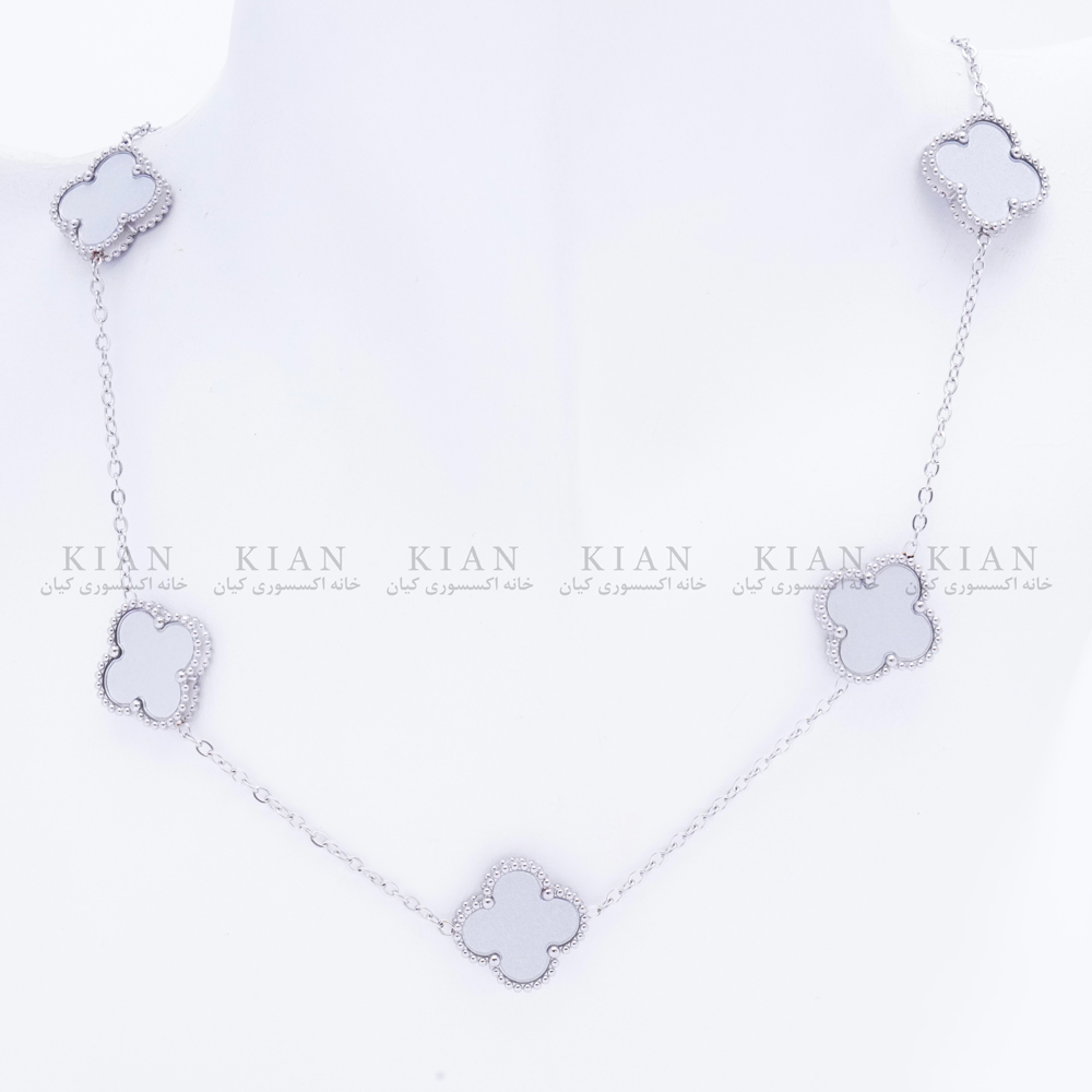 گردنبند ونکلیف 5 گل طوسی نقره ای
