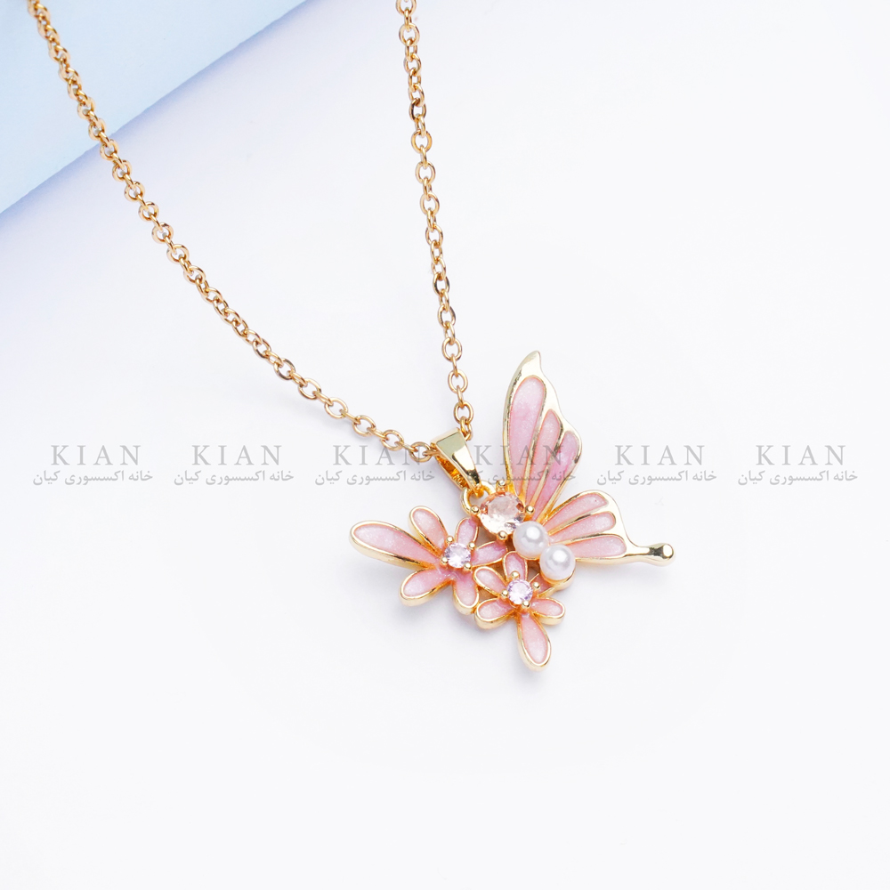 گردنبند پروانه صورتی مرواریدی از مجموعه زیورآلات ظریف و عاشقانه خانه اکسسوری کیان، نمادی از لطافت، تغییر و زیبایی درونی است. طراحی خاص پروانه با بالهای صورتی شفاف و مرواریدهای کوچک درخشان، ترکیبی چشمنواز و شاعرانه ایجاد کرده است.