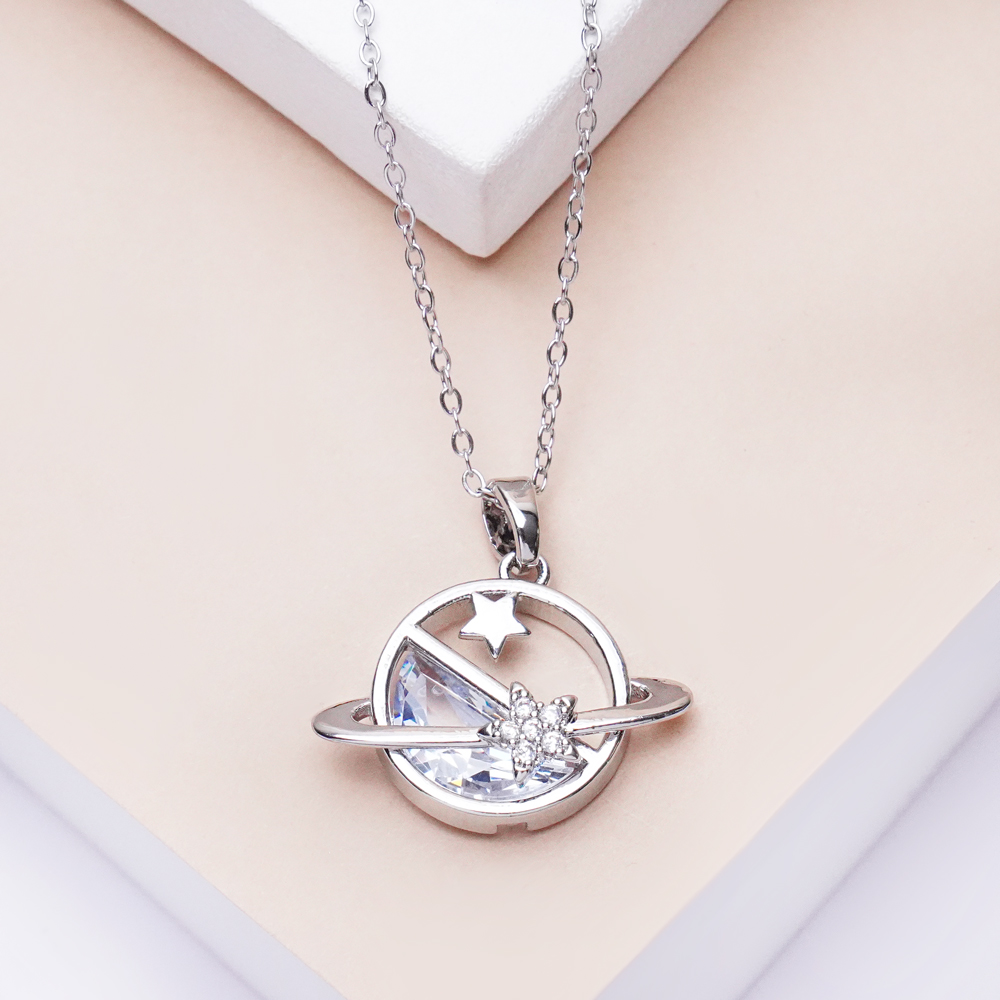 گردنبند کهکشان نقرهای با طراحی الهامگرفته از زیبایی رازآلود فضا، انتخابی شیک و خاص برای استایلهای مدرن و مینیمال است. جلوه براق نقرهای در کنار طرح کهکشانی، حس عمق و درخشش را بهزیبایی منتقل میکند و این گردنبند را به اکسسوریای متفاوت و چشمنواز تبدیل میسازد. طراحی متعادل آن باعث میشود هم برای استفاده روزمره و هم برای استایلهای رسمی ساده مناسب باشد.