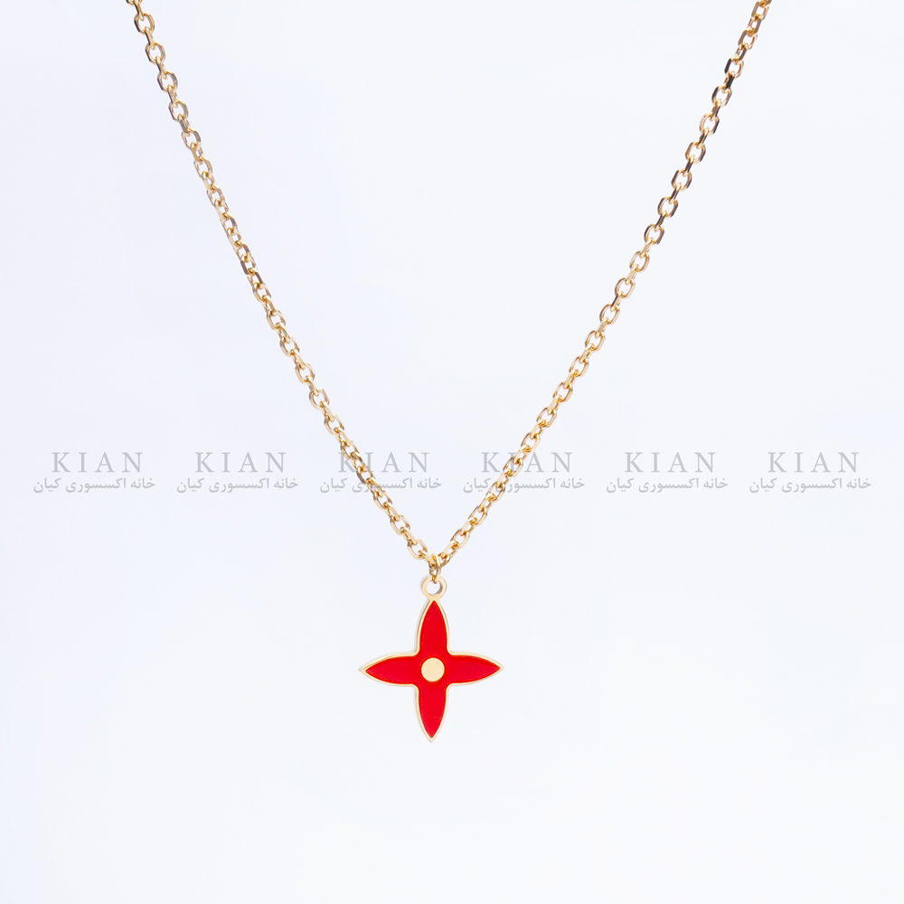 گردنبند گل قرمز طلایی