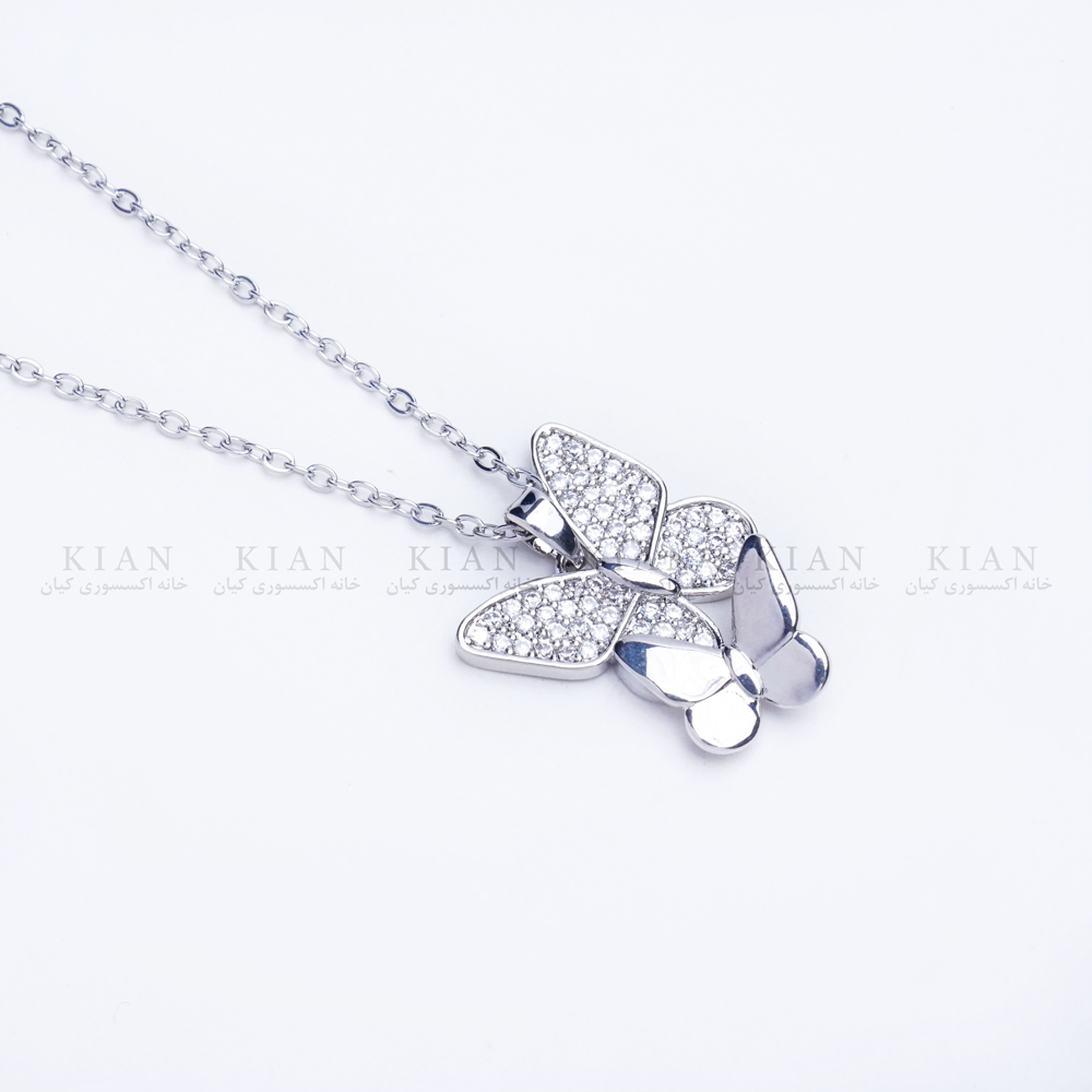 گردنبند دو پروانه با طراحی دو پروانه ظریف، نمادی از رهایی، عشق و تحول است. ترکیب دو پروانه در کنار هم، حس لطافت و همراهی را به تصویر می کشد و جلوه ای خاص و زنانه به استایل شما می بخشد. مناسب برای استفاده روزمره، مراسم خاص یا هدیه ای پرمعنا به کسی که دوستش دارید.