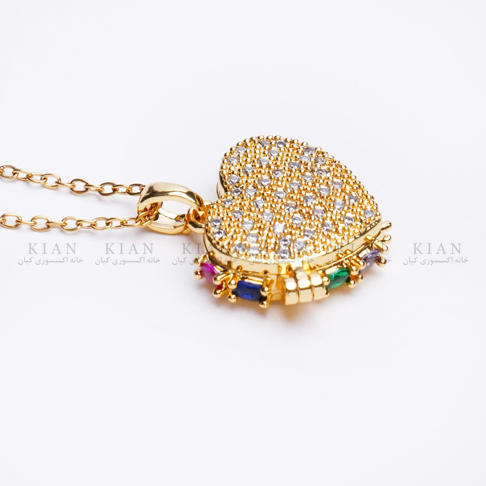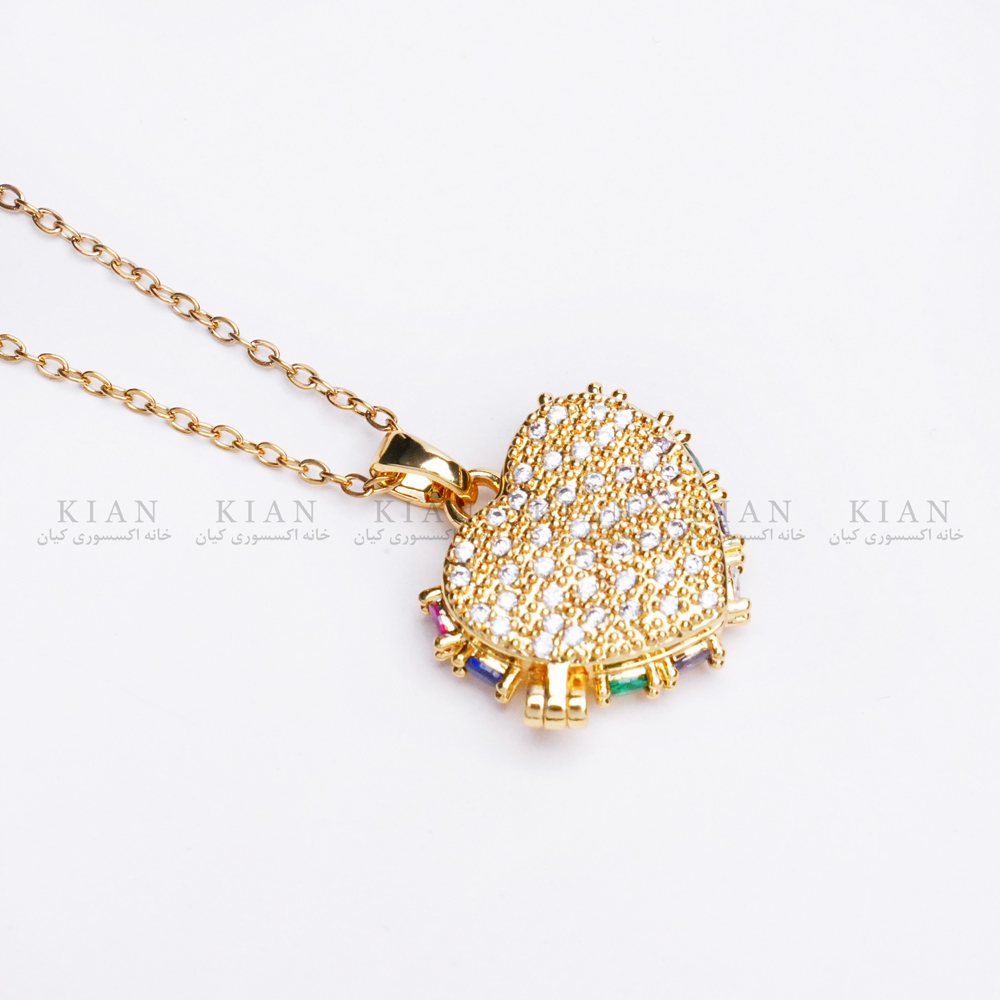 این گردنبند قلبی شکل با طراحی توپر و نگین های درخشان، نمادی از عشق و زیبایی است. نگین های ریز و با کیفیت روی سطح گردنبند، جلوه ای خاص و لوکس به آن بخشیده اند. مناسب برای هدیه دادن به عزیزانتان یا افزودن نگاهی رمانتیک به استایل روزانه و رسمی شما.