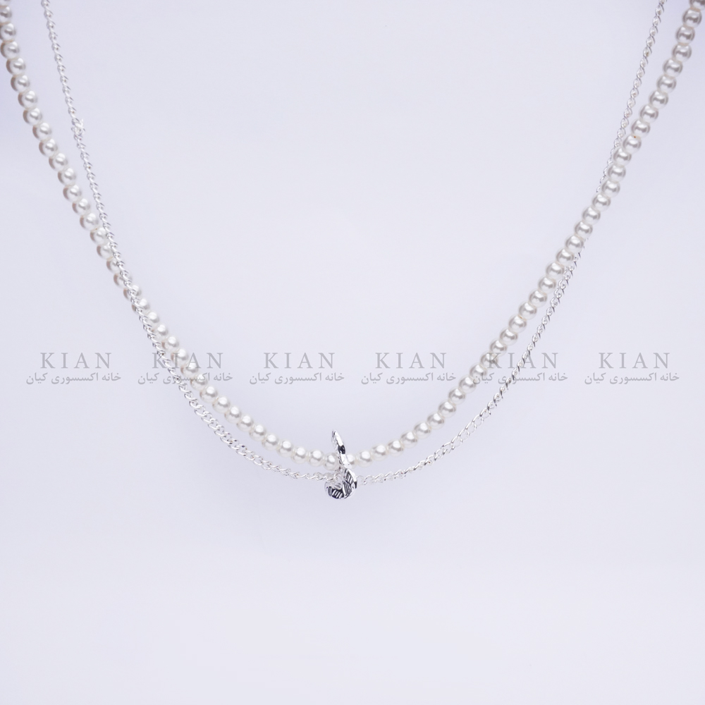 گردنبند مروارید زنجیری قلبی با طراحی دوبل و ترکیب هماهنگ زنجیر نقره ای و رشته ای از مرواریدهای سفید، نمادی از ظرافت و وقار است. آویز قلب در مرکز گردنبند، نقطه ی تمرکز این طراحی مینیمال و درخشان است.