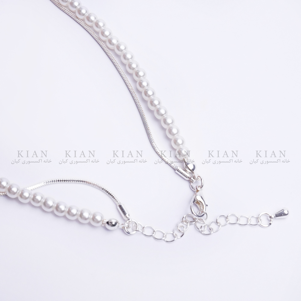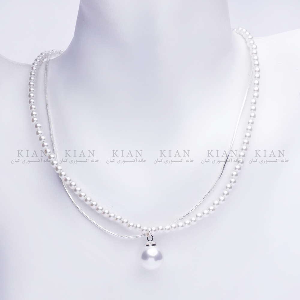 گردنبند تک مروارید با طراحی دوبل و ترکیب هماهنگ زنجیر نقره ای و رشته ای از مرواریدهای سفید، نمادی از ظرافت و وقار است. آویز مروارید در مرکز گردنبند، نقطه ی تمرکز این طراحی مینیمال و درخشان است.