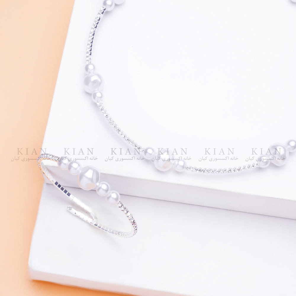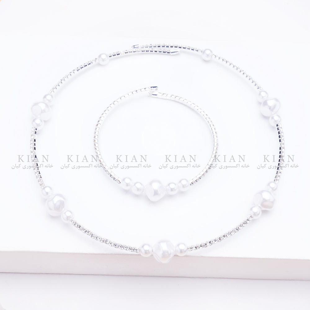 ست گردنبند و دستبند مرواریدی نقره ای