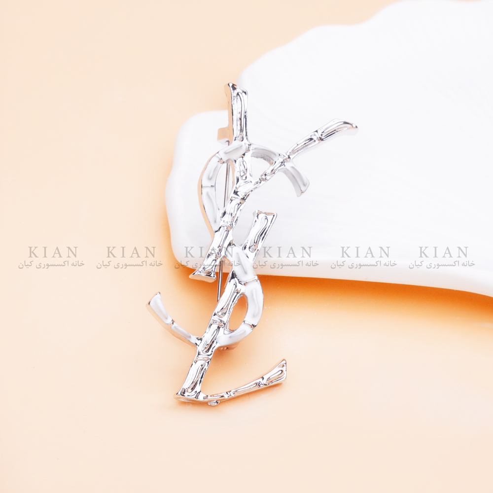 گل سینه YSL دو رنگ ، گل سینه YSL نقره ای