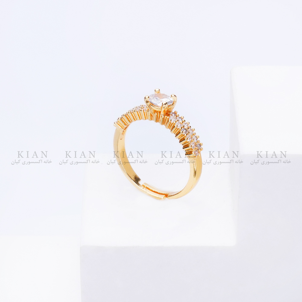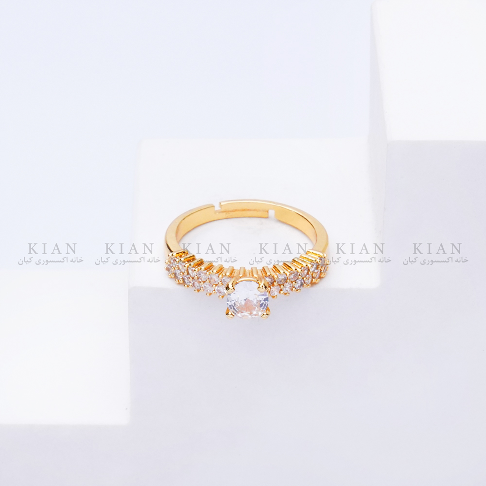 انگشتر حلقه نگین دار طلایی با طراحی کلاسیک و نگین درشت مرکزی، جلوهای خیرهکننده به دستان شما میبخشد. ردیف نگینهای ریز روی حلقه، درخشش آن را دوچندان کردهاند و باعث میشود این مدل هم برای مراسم رسمی و هم برای هدیه دادن انتخابی خاص باشد. انتخابی از کلکسیون خاص خانه اکسسوری کیان برای بانوانی که به زیبایی ماندگار و استایل شیک اهمیت میدهند.