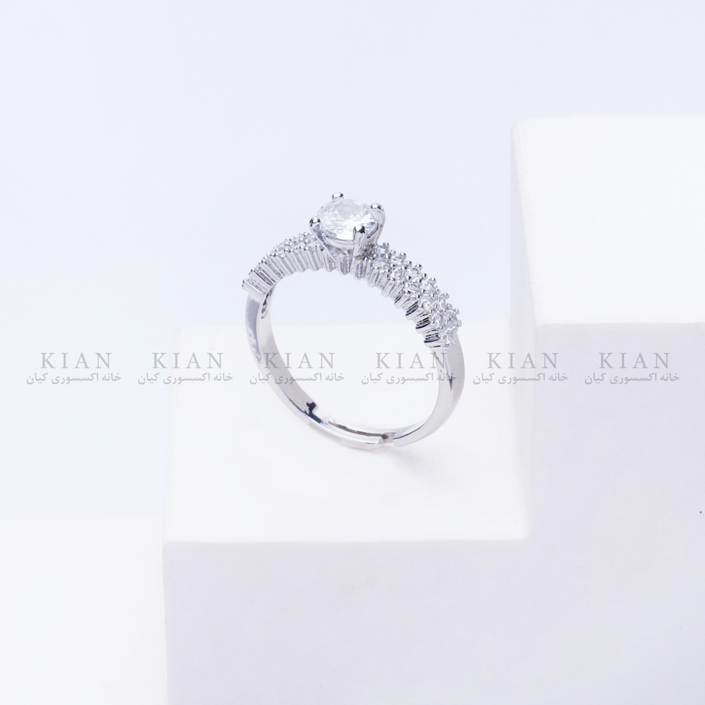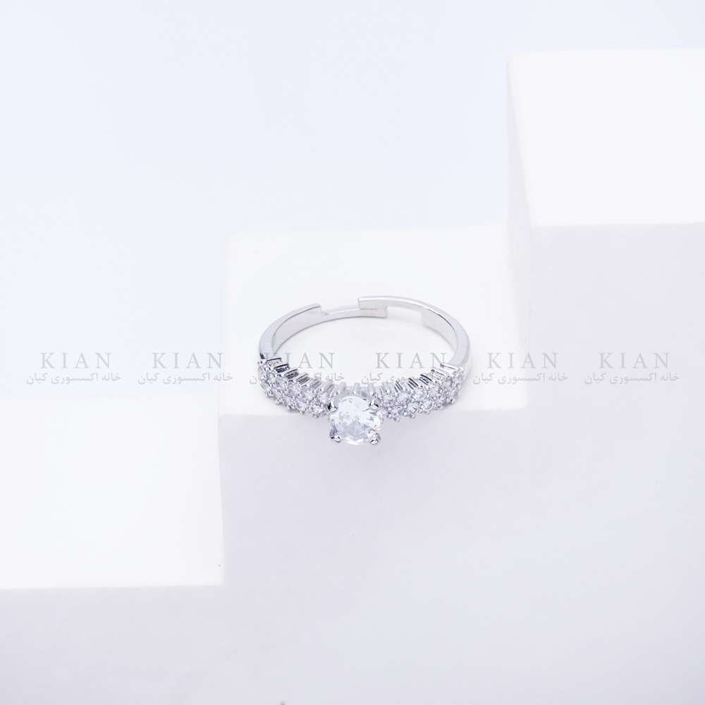 انگشتر حلقه نگین دار نقره ای با طراحی کلاسیک و نگین درشت مرکزی، جلوهای خیرهکننده به دستان شما میبخشد. ردیف نگینهای ریز روی حلقه، درخشش آن را دوچندان کردهاند و باعث میشود این مدل هم برای مراسم رسمی و هم برای هدیه دادن انتخابی خاص باشد. انتخابی از کلکسیون خاص خانه اکسسوری کیان برای بانوانی که به زیبایی ماندگار و استایل شیک اهمیت میدهند.