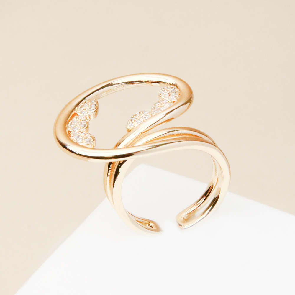 انگشتر دفرمه نگیندار طلایی با طراحی خاص و مدرن خود، انتخابی چشمنواز برای افرادی است که به زیورآلات متفاوت و ترندی علاقه دارند. فرم دفرمه و نامتقارن این انگشتر در کنار نگینهای ظریف و درخشان، جلوهای لوکس و در عین حال هنری به دستان شما میبخشد.