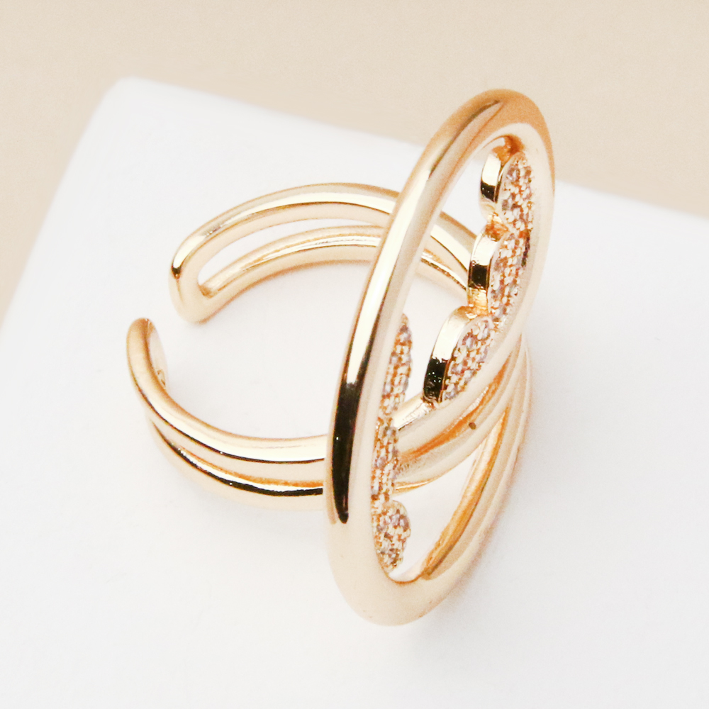 رنگ طلایی براق، زیبایی نگینها را برجستهتر کرده و باعث میشود این انگشتر هم برای استایلهای روزمره شیک و هم برای مهمانیها و دورهمیهای خاص گزینهای مناسب باشد. طراحی سبک و خوشفرم آن، استفاده طولانیمدت را نیز راحت میکند.
