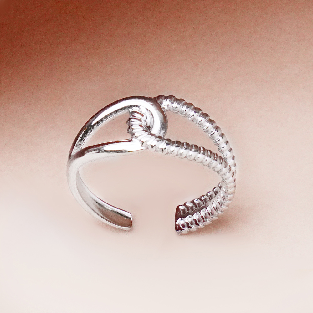 یه انگشتر ظریف و متفاوت که با فرم دو اشکیِ خودش حس لطافت و حرکت رو به دست میده. طراحی ساده اما خاصش باعث میشه روی دست خیلی دلنشین دیده بشه و رنگ نقرهای براق هم کمک میکنه بهراحتی با استایلهای مختلف ست بشه. از اون مدلهاییه که هم مینیماله، هم یه حالوهوای خاص و احساسی داره و برای استفادهی روزمره یا حتی هدیه دادن انتخاب قشنگیه.