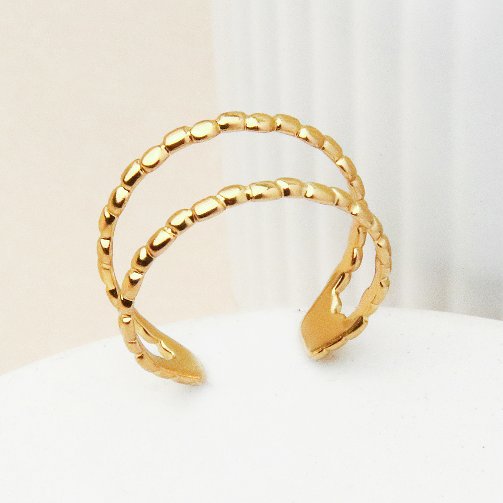 انگشتر ساچمه ای دو حلقه با طراحی مینیمال و ترندی، انتخابی شیک برای علاقهمندان به زیورآلات ساده اما متفاوت است. ردیف ساچمههای ظریف طلایی که بهصورت دو حلقه منظم کنار هم قرار گرفتهاند، جلوهای مدرن و چشمنواز ایجاد میکند و در عین سادگی، جذابیت خاصی به انگشتر میبخشد.