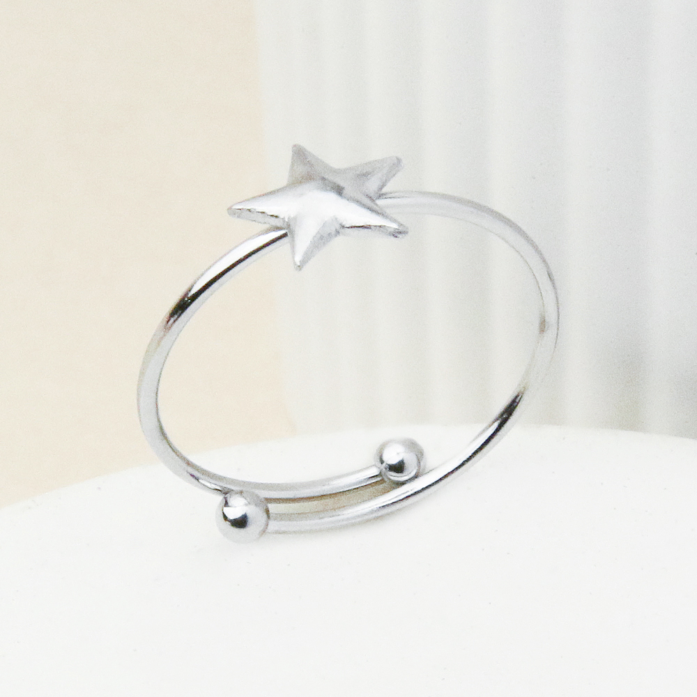 رنگ نقره ای براق، زیبایی طرح ستاره را برجستهتر کرده و باعث میشود این انگشتر هم برای استفاده روزمره و هم برای دورهمیهای دوستانه گزینهای شیک و چشمنواز باشد. طراحی سبک و خوشفرم آن، راحتی در استفاده و هماهنگی آسان با سایر زیورآلات را فراهم میکند.
