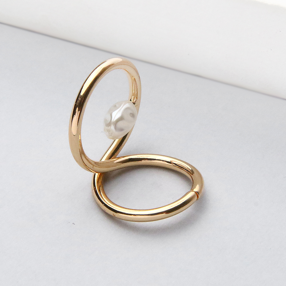 انگشتر طلایی حلقه مرواریددار با طراحی ظریف و متفاوت، انتخابی شیک برای افرادی‌ست که به اکسسوری‌های لطیف و خاص علاقه دارند. ترکیب فرم حلقه‌ای با مروارید ظریف، جلوه‌ای زنانه و دلنشین ایجاد کرده و این انگشتر را به مدلی خاص و چشم‌نواز تبدیل می‌کند.