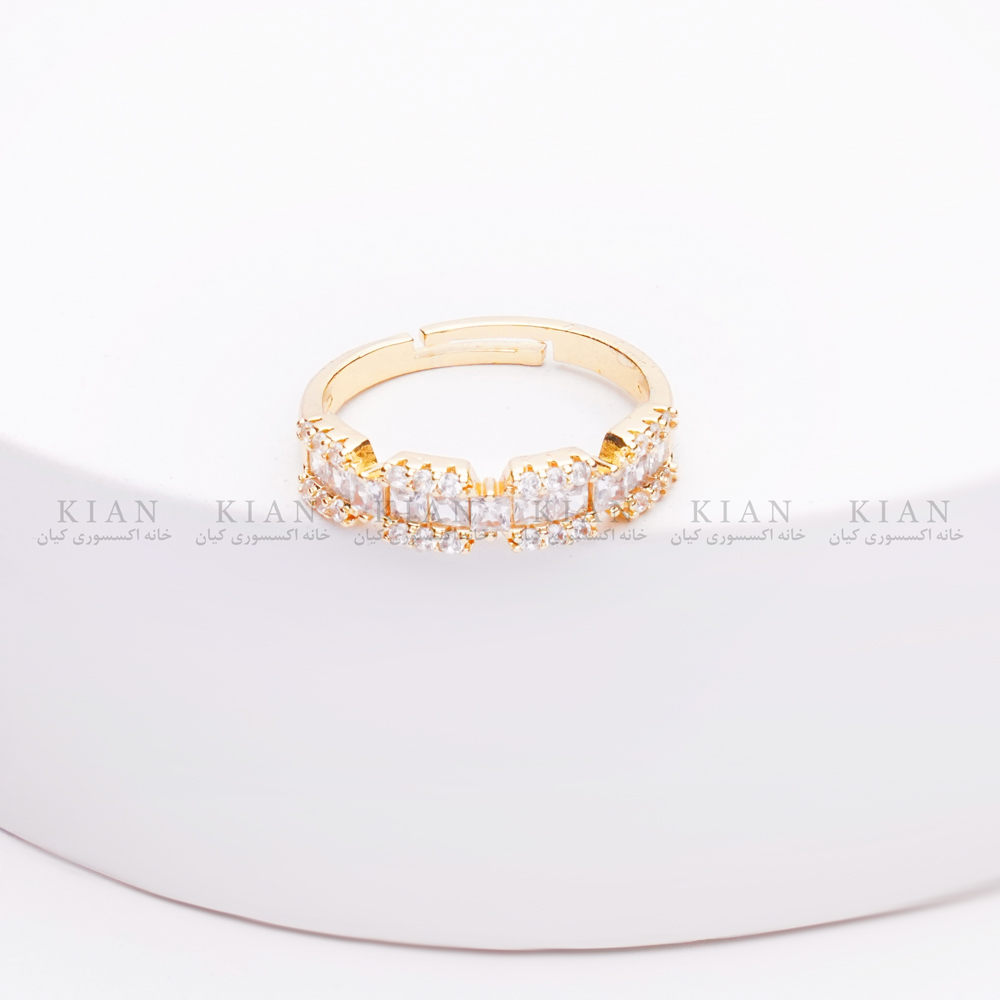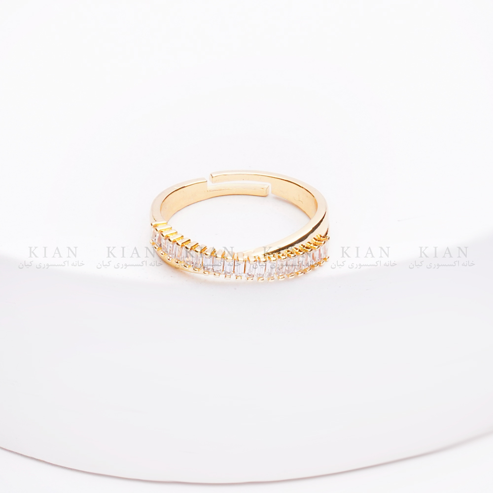 انگشتر طلایی نگینی با طراحی براق و خیره کننده، انتخابی ایده آل برای تکمیل استایل های رسمی و نیمه رسمی است. درخشش سنگ های ظریف روی بدنه ی طلایی انگشتر، جلوه ای لوکس و چشم نواز ایجاد می کند که نگاه ها را به دستان شما جذب خواهد کرد. این مدل مناسب خانم هایی ست که به دنبال اکسسوری های خاص و درخشان هستند.