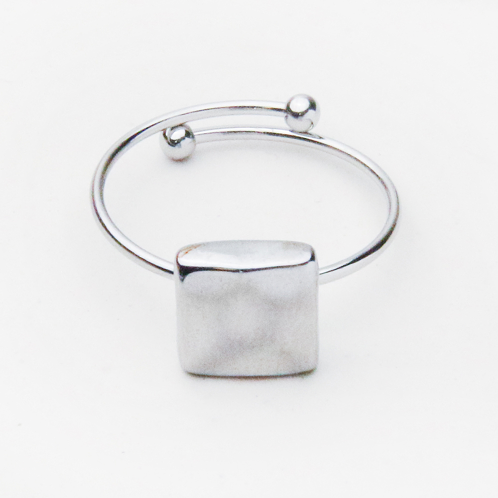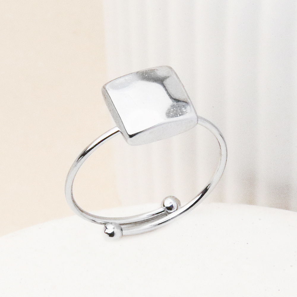 انگشتر مربع برجسته نقره ای با طراحی مدرن و هندسی، انتخابی شیک برای علاقهمندان به استایلهای مینیمال و امروزی است. فرم مربع در بالای انگشتر، جلوهای منظم، خاص و متفاوت ایجاد کرده و در کنار رنگ نقره ای براق، حس لوکسبودن و سادگی را همزمان به استایل شما میبخشد.