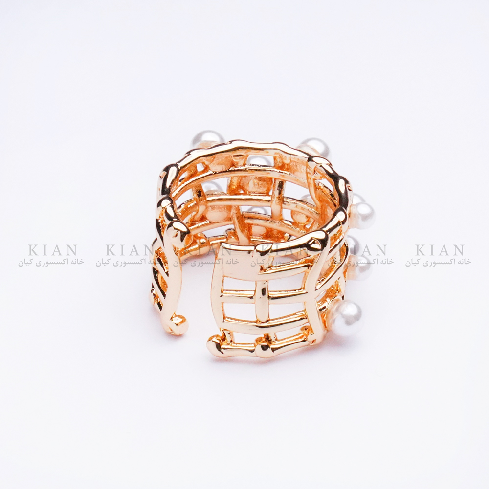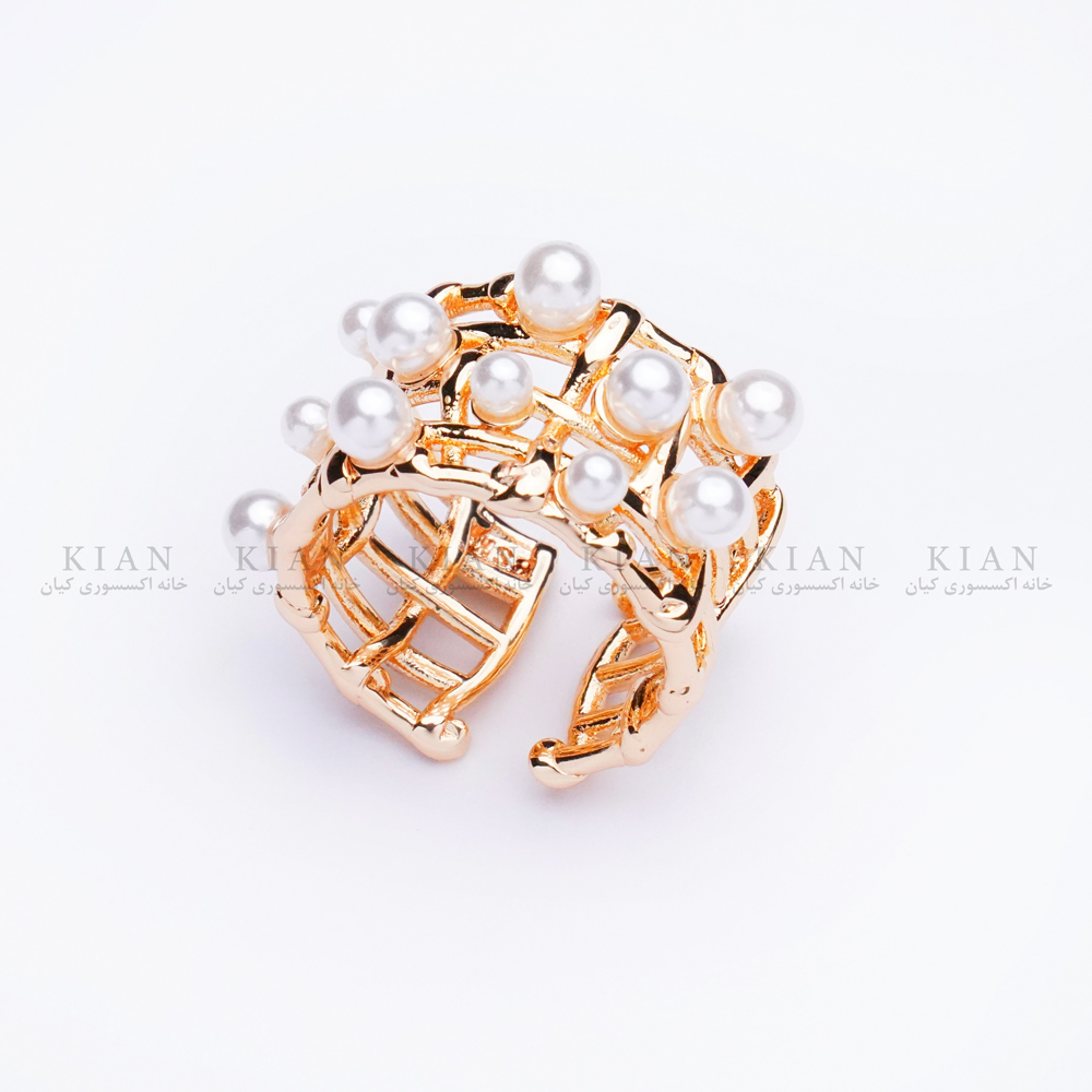 طراحی تراش دار با مروارید های سفید درخشان، در ترکیب با رنگ طلایی براق، این انگشتر رو به یه اکسسوری چشم نواز و زیبا تبدیل کرده.