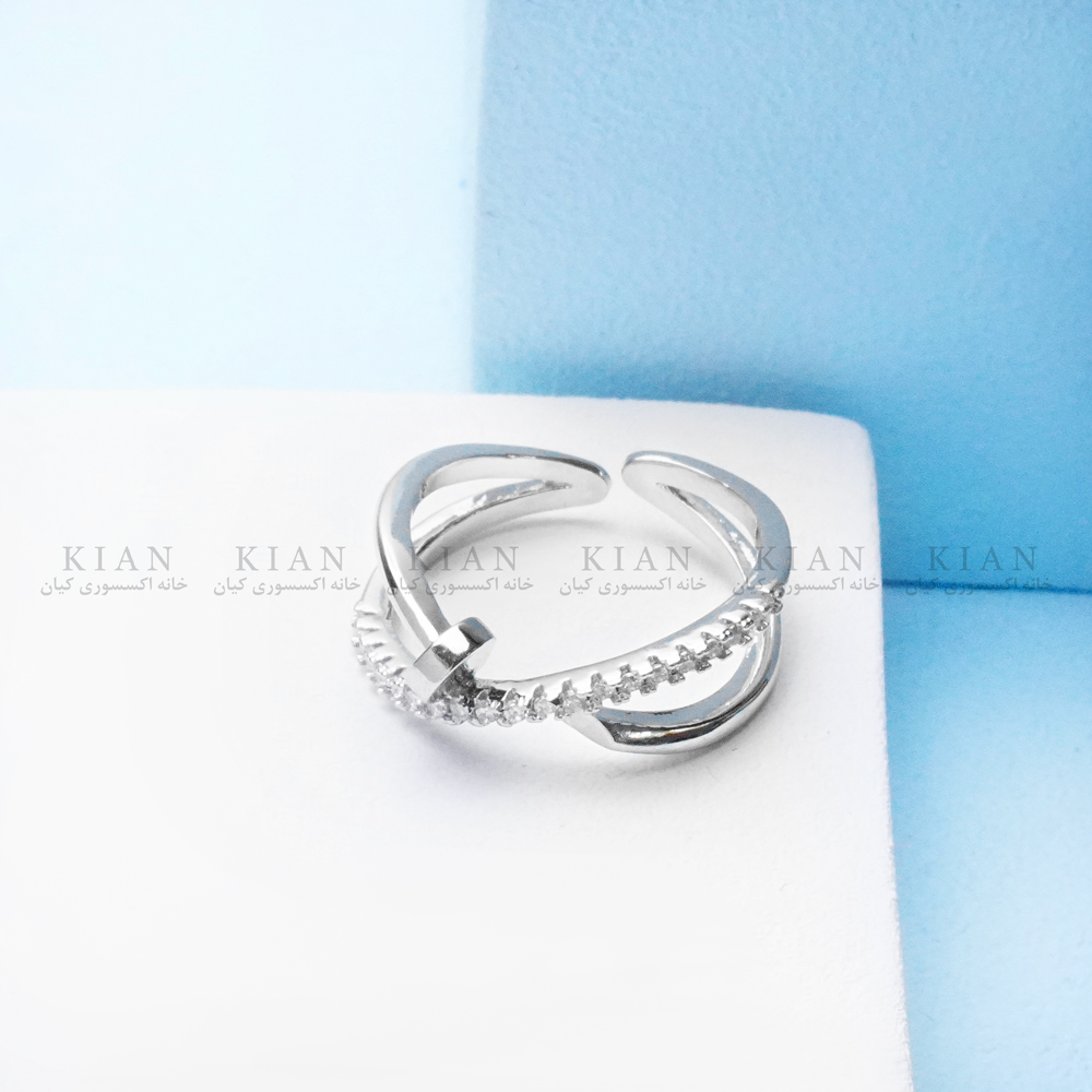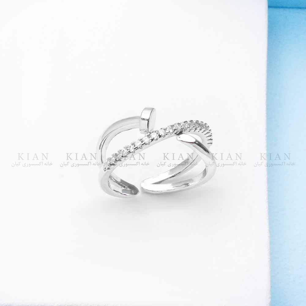 این انگشتر از فلز ضد حساسیت با روکش نقرهای براق ساخته شده و در برابر تغییر رنگ مقاوم است. طراحی باز و قابل تنظیم آن باعث میشود برای هر سایز انگشتی مناسب باشد. ترکیب ظاهر صنعتی و ظرافت نگینها، تعادلی زیبا میان قدرت و لطافت ایجاد کرده است.