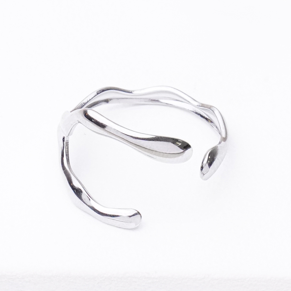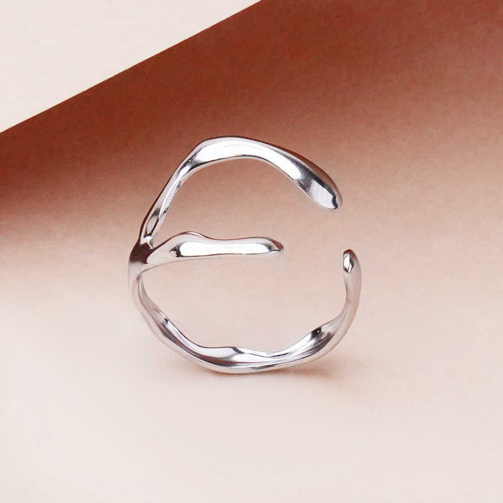 یه انگشتر خاص و مدرن با طراحی آزاد و غیرمتعارف که خمیدگی و فرم دفرمهی آن حس حرکت و زندگی به دست میده. این فرم غیرمعمول باعث میشه انگشتر روی دست جذاب و متفاوت دیده بشه، بدون اینکه شلوغ یا سنگین باشه. رنگ نقرهای براقش جلوهای مینیمال و شیک ایجاد میکنه و این انگشتر از خانه اکسسوری کیان، انتخابی عالی برای کساییه که دنبال اکسسوریهای مدرن، با شخصیت و چشمگیر هستن.