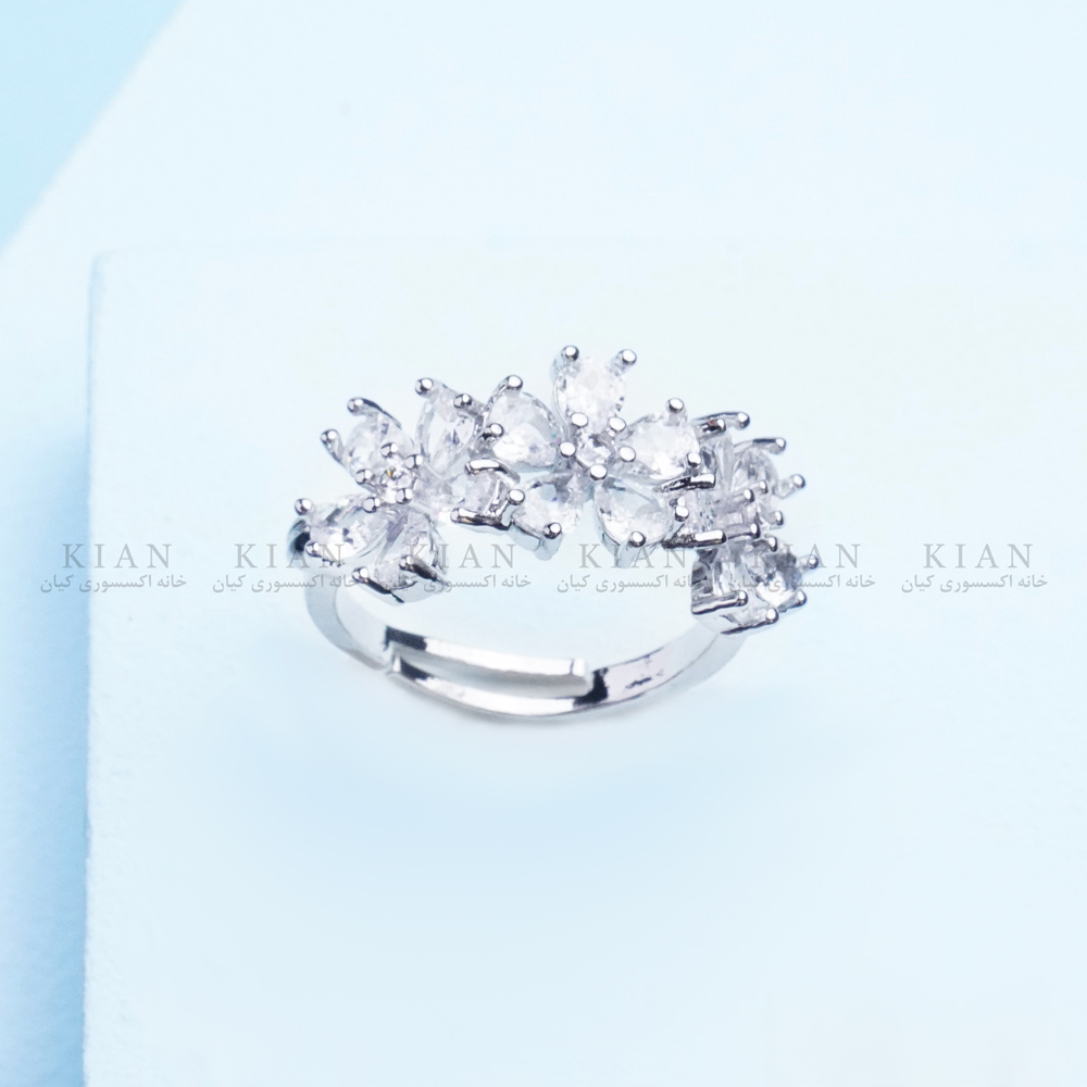 انگشتر نگین دار ، انگشتر سه گل نگین دار