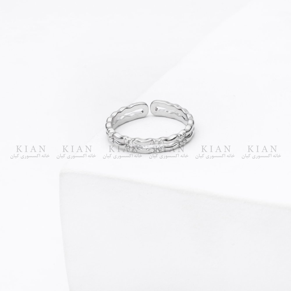 انگشتر دو رینگ نگین‌دار یکی از شیک‌ترین و چشمگیرترین مدل‌های کالکشن خانه اکسسوری کیان است. این انگشتر با طراحی هوشمندانه‌ی دو حلقه‌ی ظریف که کنار هم قرار گرفته‌اند، جلوه‌ای لوکس، متفاوت و کاملاً ترند ایجاد می‌کند.