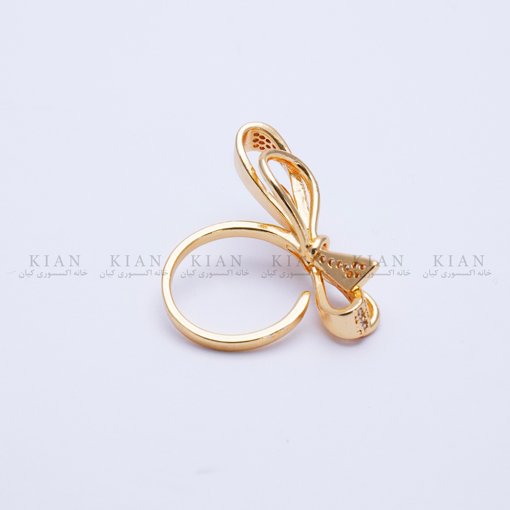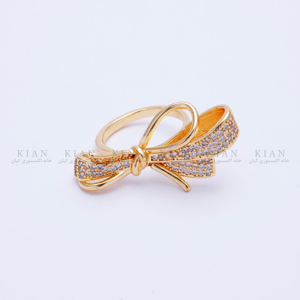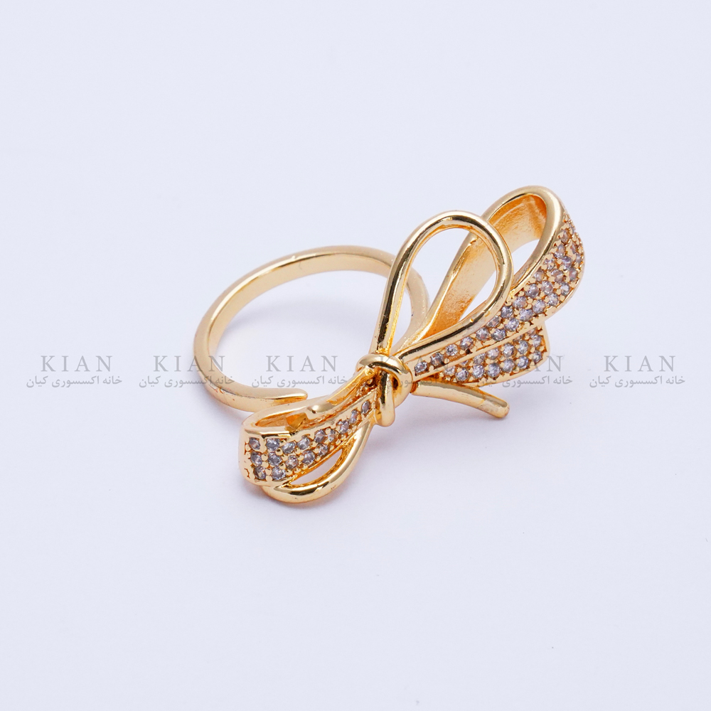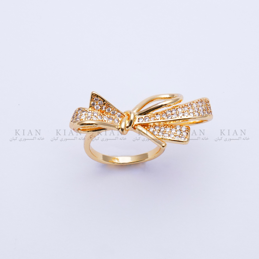 انگشتر پاپیونی با کمی نگین، معمولاً طراحیای شیک و دخترانه دارد. فرم پاپیونی به انگشتر حالتی ظریف و فانتزی میبخشد و نگینهای ریز روی آن، درخشش خاصی به انگشتان شما میدهد