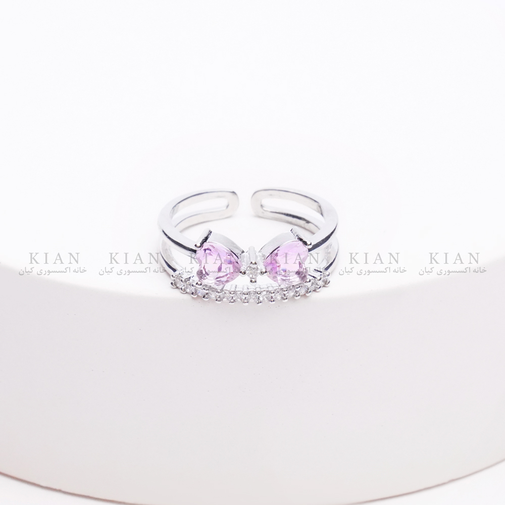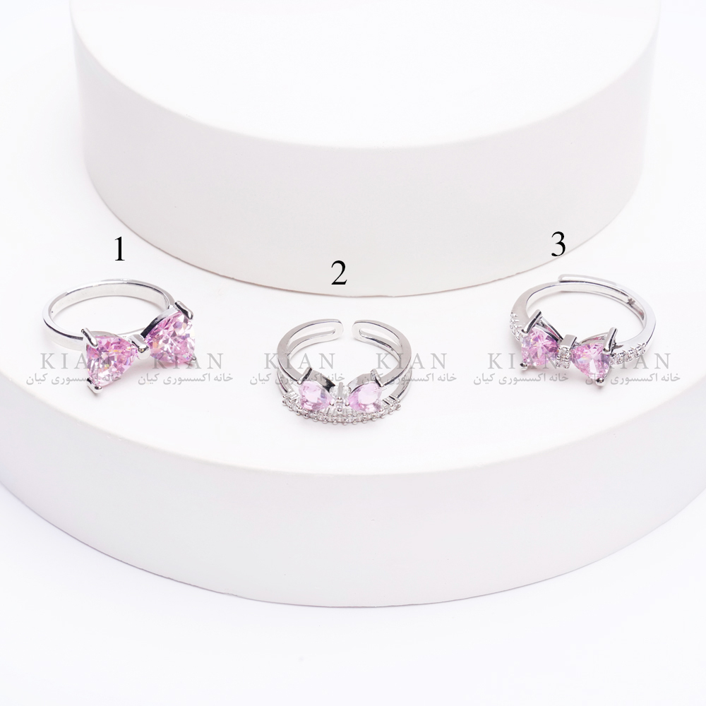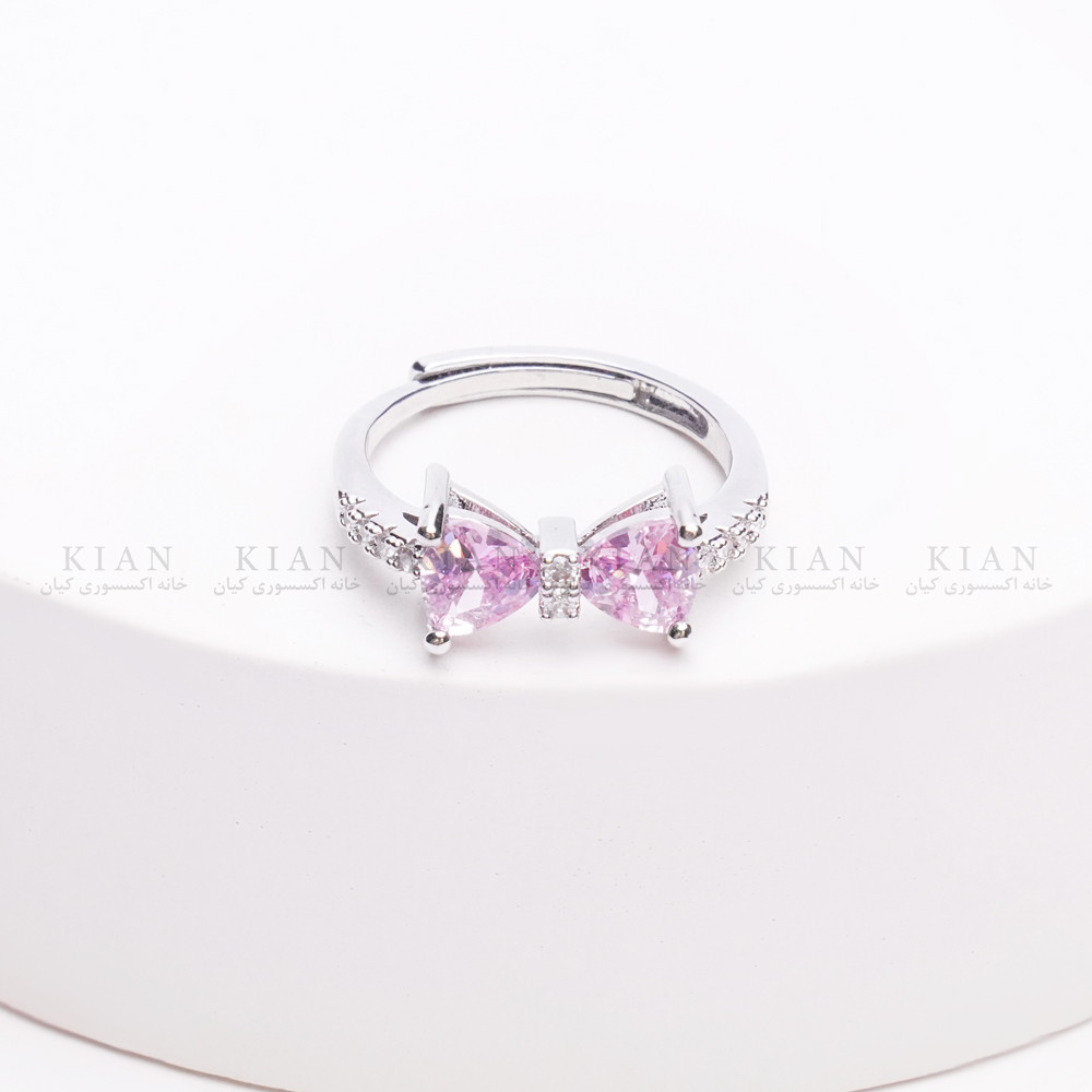 انگشتر پاپیون 2 با طراحی کلاسیک و ظرافتی چشم نواز، از نگین درخشان صورتی به شکل پاپیون تشکیل شده و دور تا دور انگشتر را نگین های ریز در بر می گیرد. این انگشتر انتخابی مناسب برای مجالس رسمی یا افزودن درخشش به استایل روزمره است.