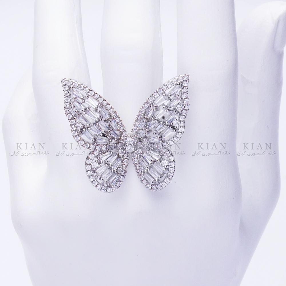 انگشتر پروانه نقره ای پرنگین