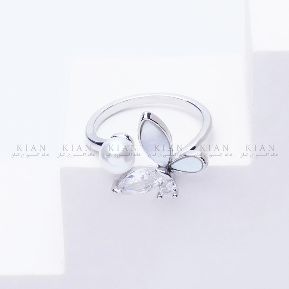 انگشتر پروانه و مروارید نقره ای با ترکیب ظریف نماد پروانه و مروارید براق، ظرافتی شاعرانه را به دستان شما هدیه می دهد. طراحی دل نشین این انگشتر، از انتخاب های خاص خانه اکسسوری کیان برای بانوان خوش سلیقه ای ست که به دنبال ترکیبی از لطافت و درخشش هستند.