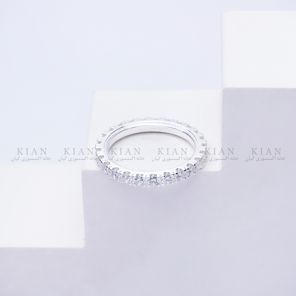 انگشتر پر نگین کوبیده با طراحی درخشان نقره ای و سطح کاملاً نگین کاری شده، جلوه ای مجلل و خیره کننده دارد. این مدل با درخشش یک دست نگین ها، به ویژه زیر نور، انتخابی عالی برای کسانی است که به دنبال ظاهری لوکس و متفاوت هستند. از کلکسیون خاص خانه اکسسوری کیان، این انگشتر برای بانوان خوش سلیقه ای طراحی شده که به جزئیات ظریف و کیفیت بالا اهمیت می دهند.