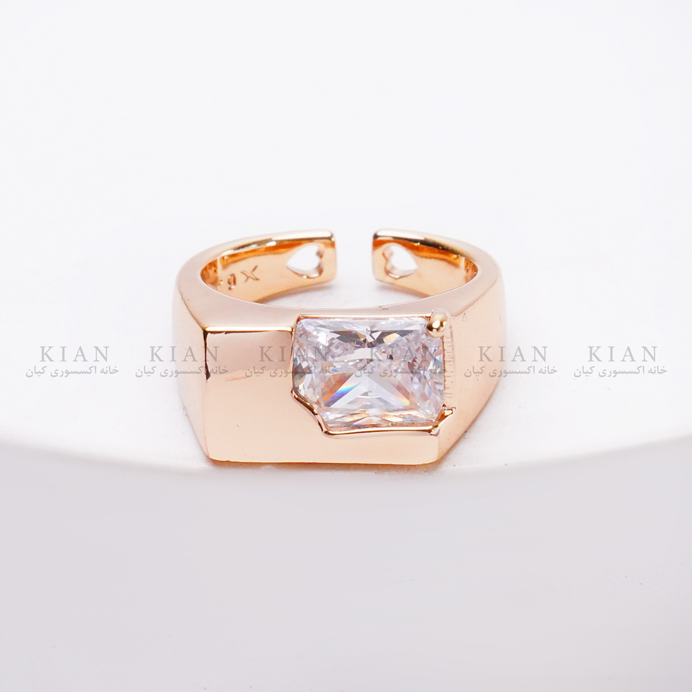 این انگشتر با بدنهای طلایی ژوپینگ و طراحی باز (رِسایز فری) ساخته شده و در مرکز آن یک نگین کریستالی براق قرار گرفته است که با هر حرکت دست، نور را به زیبایی بازتاب میدهد. جزئیات ظریف در دو طرف نگین، ظاهر انگشتر را جذابتر و حرفهایتر کرده و آن را مناسب استایلهای روزمره، رسمی و حتی مهمانیها میسازد.