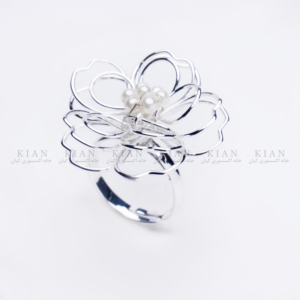 انگشتر گل توری و مروارید نقره ای از مدل های خاص خانه اکسسوری کیان، انتخابی ظریف و چشم نواز برای تکمیل استایل روزمره یا مجالس شماست. این انگشتر با طراحی خاص خود، جلوه ای متفاوت و شیک به دستانتان می بخشه.