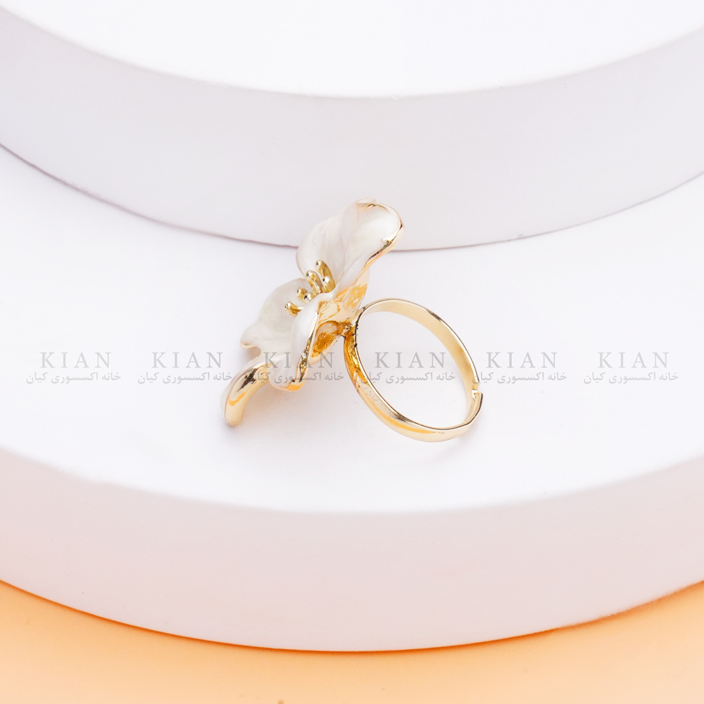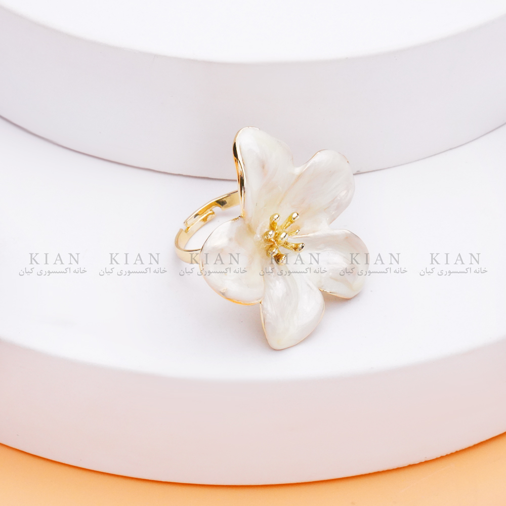 انگشتر گل یاس از مجموعه زیورآلات لطیف خانه اکسسوری کیان، با طراحی الهام گرفته از گل یاس سفید، نمادی از پاکی، لطافت و زنانگی است. گلبرگ های صدفی درخشان در کنار پایه طلایی ظریف، جلوه ای زیبا و چشم نواز ایجاد کرده اند که برای استایل های مینیمال یا مجلسی کاملاً مناسب است.