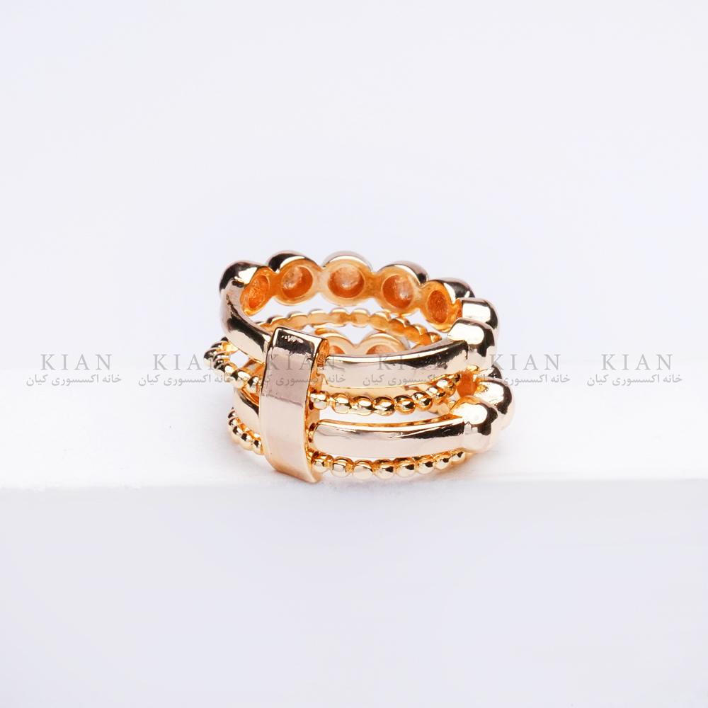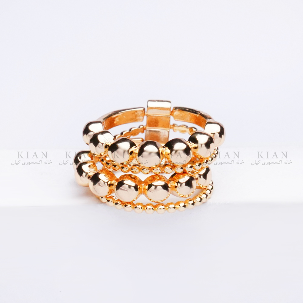 طراحی و ترکیب گوی های زیر و درشت با جلوه ای درخشان، در ترکیب با رنگ طلایی براق، این انگشتر رو به یه اکسسوری چشم نواز و زیبا تبدیل کرده.