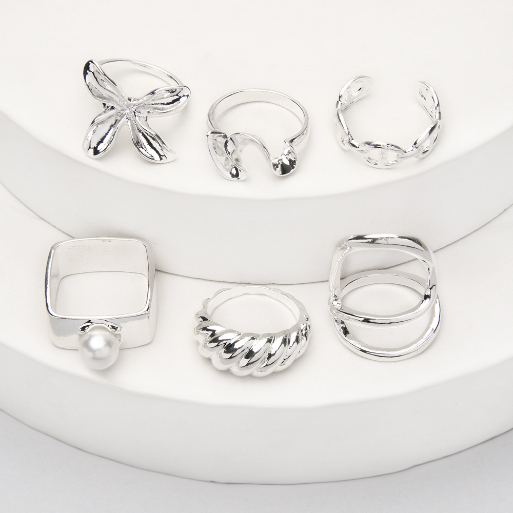 این پک امکان استفاده تکی یا ترکیبی از انگشترها را فراهم میکند و برای استایلهای روزمره شیک، دخترانه و حتی مهمانیهای خاص انتخابی ایدهآل است. رنگ نقرهای براق در کنار مرواریدها، بهراحتی با سایر زیورآلات نقرهای یا مرواریدی ست میشود.