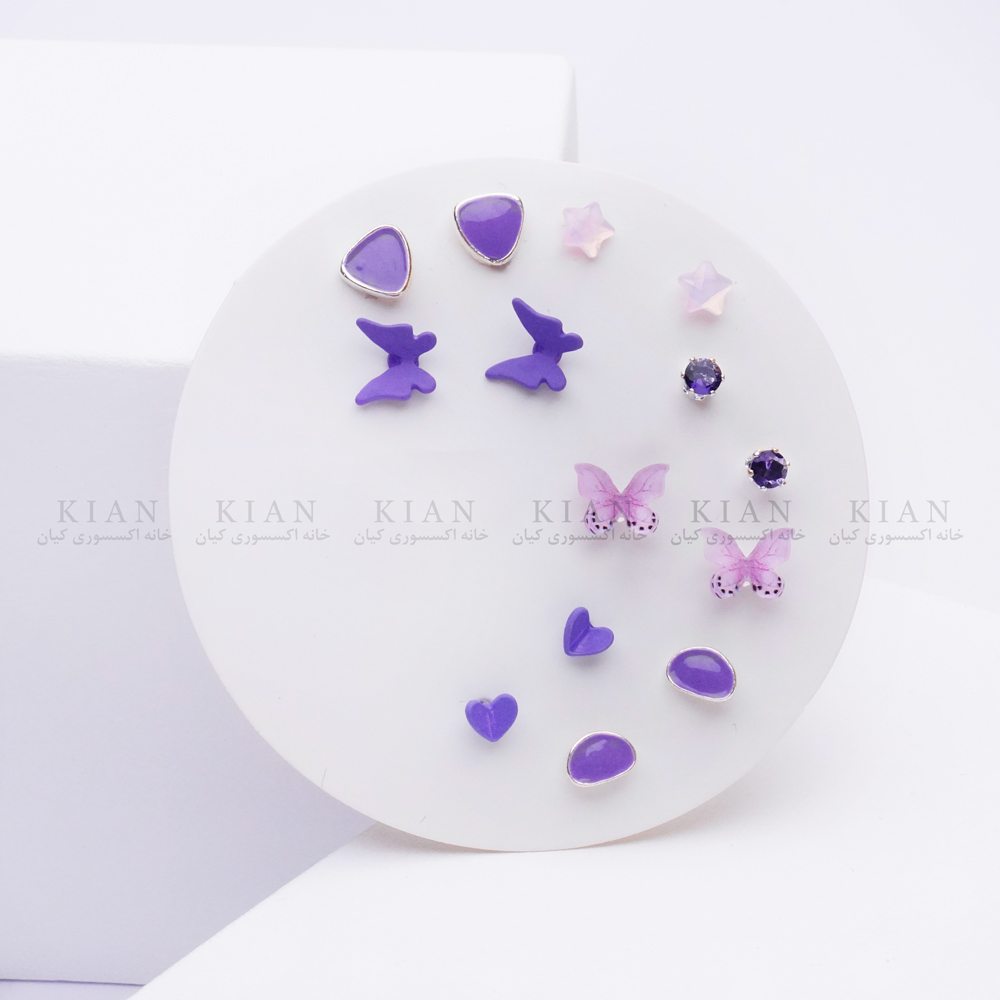 پک گوشواره پروانه بنفش از کالکشن فانتزی و لطیف خانه اکسسوری کیان، با طراحیهای الهامگرفته از طبیعت و رنگهای آرامشبخش، انتخابی دلنشین برای استایلهای دخترانه و ترند امروزی است. این مجموعه شامل چند مدل گوشواره ظریف با طرح پروانه، گل، قلب و نگینهای براق بنفش و نقرهای است که هرکدام درخششی خاص به استایل شما میدهند.