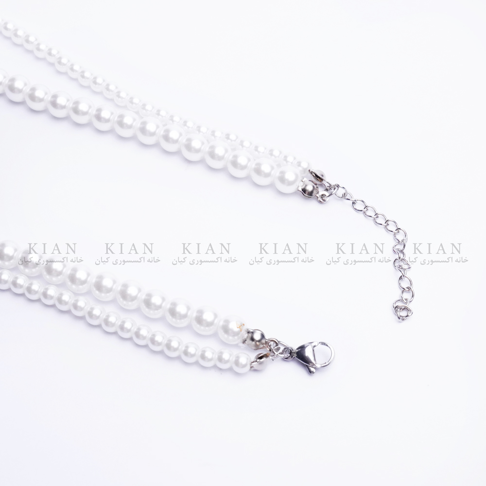 گردنبند مروارید دو رج ریز و درشت با طراحی دوبل و ترکیب هماهنگ زنجیر رشته ای از مرواریدهای سفید ریز و درشت، نمادی از ظرافت و وقار است. وجود دو ردیف مروارید زیر و درشت این طراحی را مینیمال و درخشان کرده است.